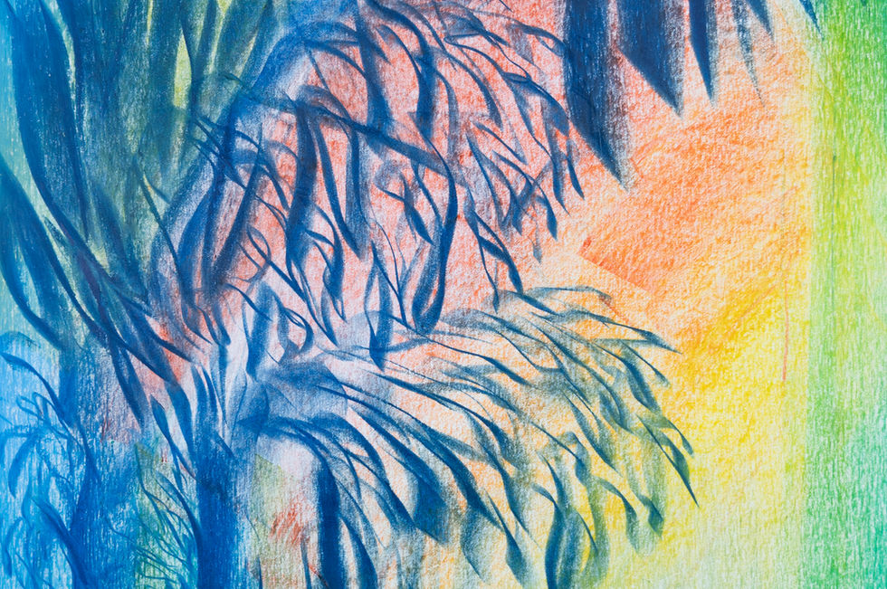 크레용으로 반복된 선의 중첩과 힘의 농담(濃淡)은 수묵화의 기운생동을 떠올리게 하며, 일필휘지의 과감한 흔적을 남긴다. 그 속에는 역동과 정적이 교차하는 리듬이 깃들어 있으며, 여백은 단순한 공백이 아니라 관람자의 기억과 감정을 담아내는 사유의 공간으로 확장된다.